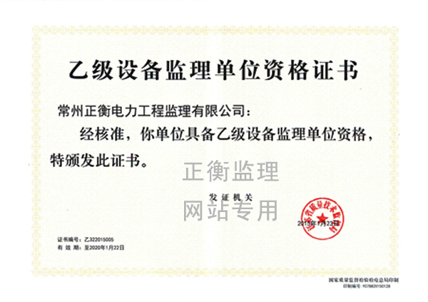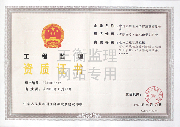 | 持证单位: 常州正衡电力工程监理有限公司 |